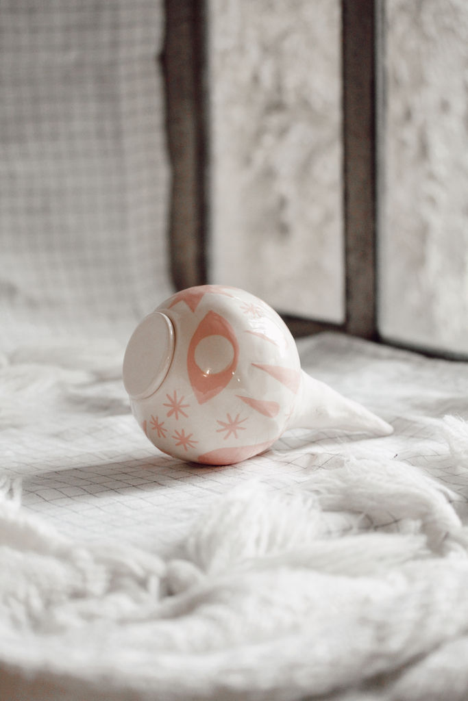 POT PERCÉ RAYÉ NOIR ET SA SOUCOUPE